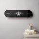 This attractive design features a photo-realistic chrome three-star dual layered emblem with a superimposed American flag. It is set against a black background and captioned with: USA ESTD 1776. Easily edited and personalized.