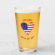 Personalized beer or drinking glass designed to share your love of all things American, a large apron with a heart-shaped flag of the red, white, and blue flag of the United States of America and a blue background. Above is a spot for your name (or someone else's, if this is a gift), below a place to write an occasion (birthday, Valentine's Day, Independence Day, etc.) and year. Enjoy your event while honoring your love of your heritage. Great housewarming gift. Terrific for family reunions and friend reunions, too.