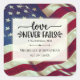 Personalisierter Hochzeitsticker der Patriotischen USA Flag zeigt die US Flagge der amerikanischen Fahne rot, weiß und blau. Es enthält Christliche Bibelverse aus 1 Korinthen 13:8, "Liebe versage nie". Passen Sie sich die Namen und das Datum des Paares an.