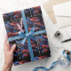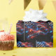 Eine lebendige Darstellung der amerikanischen Fahne zeigt wirbelnde rote, weiße und blaue Muster, mit Sternenhintergrund-Set
