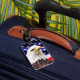 Dieser patriotische Gepäckanhänger kennzeichnet ein Porträt eines heftigen amerikanischen Weißkopfseeadlers vor der Stern spangled amerikanischen Flagge. Die Rückseite des Umbaus hat Ihren kundenspezifischen Text in dunkelblauem auf einem weißen Feld, das im Rot gezeichnet wird und dann auf einen dunkelblauen Hintergrund gesetzt ist.
