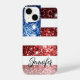 Personalisieren Sie Imitate funkelnd mädchenhafte iPhone Gehäuse mit Ihrem eleganten Skriptnamen. USA Flagge in rot und blau Imitat Glitzern Glitzer. Wir benutzen Foto von Glitzern Glitzer.