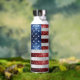 US-Flagge rot blauen Glitzern Glitzer Insulated Water Flasche. Funkelnd Amerika 4. Juli weiße glühende Sterne und funkelnde Streifen. Lebhafte US-Fahne in den Glitzern Rot, Weiß und Blau des Imitats. Wir verwenden Foto von Glitzern Glitzer!