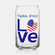 Can glass oder bier glass zeigt das Wort "LIEBE" in blauen Buchstaben mit der herzförmigen Fahne der USA für das "O". Fügen Sie einen Namen oben, auch in blauen Buchstaben, für sich selbst oder ein Geschenk hinzu. Ideal zum Feiern am 4. Juli, einem Wiedersehen oder einer von Freunden, einer Reisegruppe oder einem Verein. Macht ein durchdachtes Geschenk zum Feiern des amerikanischen Kulturerbes.