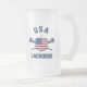 Lacrosse. Flaggenschildentwurf mit gekreuzten Stöcken. Entwürfe verfügbar in den regelmäßigen und verwitterten, Vintag-ähnlichen Versionen. USAlacrosse. Vereinigte Staatenlacrosse-T - Shirts, -Tassen, -kappen, -aufkleber und -mehr.