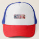 Ein lustiger LKW-Hut mit rot, weiß und blau, zusammen mit "USA". Verwenden Sie die Vorlage zum Personalisieren. Sie können den Text behalten oder ändern.