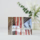 USA, Oregon, Shaniko. Flag im Fenster neben Postkarte