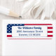 Ein rot, weiß und blau amerikanisches Flaggen Rücksendelabel Design für den US-Bürger, der patriotisch und stolz auf sein Land ist, mit ihrem Namen und ihrer Adresse personalisieren. Sie können den Schriftart, die Größe des Schriftartes, die Farbe des Schriftartes, den Abstand der Buchstaben, den Zeilenabstand ändern und den Text mithilfe des Entwurfstools neu positionieren.