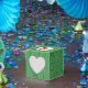 Herzausschnitt Gunst Box hat einen roten haarigen Engel mit der Fahne der USA für Feiertag Dekoration oder Weihnachtsdekoration. Der Weihnachtsengel der US-Fahne befindet sich in einem weißen Fraktal-Kreis von quadratischen Quadraten. Der Hintergrund ist ein grünes Fraktal mit quadratischen Quadraten. Fügen Sie Ihren eigenen Text oder personalisieren Sie mit einem Namen und das Jahr.