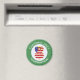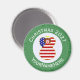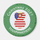 Runder Magnet für die Weihnachtsdekoration mit einem Engel in der Fahne der USA. Der Engel befindet sich in einem weißen Kreis von quadratischen Quadraten mit einem Hintergrund von grünen quadratischen Quadraten. Fügen Sie, wenn Sie möchten, Ihren eigenen Text hinzu. Personalisieren mit einem Namen und anpassen mit dem Jahr. Spaß kleine Geschenk. Ehre dein amerikanisches Erbe während der Feriensaison.