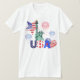 "USA" mit der Freiheitsstatue dahinter und einem Herz und Stern im amerikanischen Stil, und Feuerwerk in rot, weiß und blau. Ein tolles Geschenk für den 4. Juli.