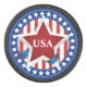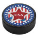 Rote, weiße und blaue US Flagge mit amerikanischem Text auf diesem bunten Hockeypuck.
