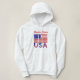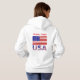 Personalisierte Frauenhuodie zeigt die Fahne der USA, oder, amerikanische Fahne mit den Buchstaben USA unten in rot, weiß und blau mit US Flagge, in der Flagge zu finden. Personalisieren Sie, indem Sie Ihren Namen hinzufügen, oder, für ein kreatives Geschenk, fügen Sie den Namen einer anderen Person. Spaß für Unabhängigkeitstagsfeiern und Wiedersehen.
