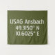 Längen- und Breitengradkoordinaten für USAG Ansbach / Katterbach Kaserne in Deutschland Stift weißer Schriftart auf armegrün Hintergrund.