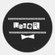 Magnete, Karten, Mousepads, Schlüsselanhänger und mehr mit weißem Text und einer Bogen-Krawatte auf schwarzem Hintergrund.