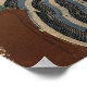 Ein weiterer Farbdruck aus Utagawas weiblicher Druckserie. Utagawa Kuniyoshi war ein berühmter japanischer Künstler im 19. Jahrhundert, und in vielen seiner Drucke waren Frauen das Hauptthema. In diesem Druck sehen wir eine japanische Frau, die sich niederkniet und mit ihren Händen zusammenklatscht. Wie üblich trägt sie den traditionellen japanischen Kimono, diesmal mit einem blau, schwarz und grau gestreiften Muster. Hinter ihr an der Wand sieht man ein gerahmtes Bild (oder ein Druckwerk), das zeigt, was entweder ein japanischer Weise oder ein Krieger aussieht. Dieser Mönch ist vor einem Wasserfall stehend und trägt hellorangefarbene und rote Kleidung. Utagawa unterschrieb das Kunstwerk in Kanji-Buchstaben und Hiragana (japanisches Schreiben).