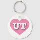 Dieser Schlüsselanhänger hat ein cooles, rosa Herz mit den fett, weiß, Großbuchstaben UT, die offizielle Abkürzung für Utah, den Bienenstock-Staat.