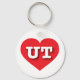Diese Schlüsselkette verfügt über ein lebendiges rotes Herz, das die fett-, weiß-, Großbuchstaben UT, die offizielle Abkürzung für Utah, den Bienenstock-Staat, enthält.