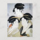 Genießen Sie diese schöne Reproduktion des Holzschnitts "Three Beauties" des japanischen Künstlers Kitagawa Utamaro aus dem Jahr 1793. Dieses Bild zeigt drei Frauen aus Edo (heute Tokio), die für ihre Schönheit bekannt sind. Ukiyo-e ("Bilder der schwimmenden Welt") ist ein Genre japanischer Holzschnitten (oder Holzschnitten) und Gemälden, die zwischen dem 17. und dem 20. Jahrhundert hergestellt wurden und Landschaftsmotive, Geschichten aus Geschichte, Theater und Vergnügungsvierteln enthalten. Es ist das wichtigste künstlerische Genre des Holzschnitt-Drucks in Japan. Der Floating World Store auf Zazzle stellt diese historischen Schätze sorgfältig wieder in ihren wahren Farben her und behebt grundlegende Alterungsprobleme. Papiertextur und Farbe werden beibehalten, weil sie die altertümliche Schönheit dieser Meisterwerke offenbaren.