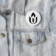 Weißer pinback Knopf, der das unitarischen universalistischen Chalicesymbol der Religion im Schwarzen kennzeichnet