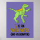 Lass der Welt, dass du mit diesem wilden Dinosaurier geimpft bist. Dieses Plakat zeigt eine Abbildung eines Velociraptors in hellgrün mit einem Verband auf seinem Arm, wo er seinen Schuss über der Nachricht "V ist für geimpft (und Velociraptor)" got alles Set vor einem lila Hintergrund.