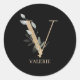 V Monogramm Floral Personalisiert Runder Aufkleber