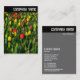 Eine vertikale Visitenkartenvorlage mit einem schwarzen Header und einem Bild auf der Vorderseite. Firmenname im Kopf vorne und hinten mit allen anderen Kontaktdaten auf der Rückseite. Das Foto oder Bild auf der Vorderseite kann ebenfalls geändert werden. Das Design bietet auch viel Raum für zusätzliche Anpassungen.