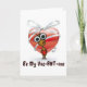 Frag ihm, mit dieser lustigen und einzigartigen Valentinstag-Karte dein Valentin zu sein! Niedliche kleine Ameise mit riesigen Augen stehend vor einem großen roten Herz, in einen Bogen gewickelt, mit einem kleinen roten Herz. Originelle Cartoon-Kunst von Taylor Addams.