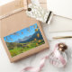 Val di Funes mit einem Rechteck auf Herbstblättern Rechteckiger Aufkleber