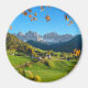 Val di Funes mit Herbstblättern und Rundmagneten Magnet