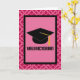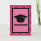 Niedliche rosa gemusterte Valedictorian-Abschluss-Karte hat schwarzes Absolventhutlogo. Geben Sie diesen Kopf des intelligenten Absolvent der Klasse, den ein großes weg mit dieser Grußkarte senden.