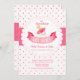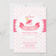 Die perfekte Einladung für eine Valentiner Babydusche. Der weiße Hintergrund hat einen winzigen Hintergrund mit roten Herzen, mit einem dekalosiertem Dekor, einem Schnuller und einem Banner mit den Worten "Babydusche".