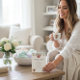 Feiern Sie einen besonderen "Baby ist auf dem Weg"-Moment mit dieser charmanten Babyshower-Einladung, perfekt für eine Feier zum Valentinstag. Das Design zeigt ein zartes Eukalyptus-Girlande mit niedlichen herzförmigen Babykleidern, begleitet von einer gemütlichen Kaffeetasse und einer Tüte Kaffeebohnen. Die warmen, erdigen Töne und die Aquarell-Illustrationen schaffen eine rustikale und einladende Atmosphäre. Diese Einladung ist ideal, um die werdende Mutter mit einem Thema zu ehren, das die Aufregung über die neue Ankunft mit der Wärme einer Kaffeepause verbindet.