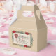 Pfirsichfarbene Greifbox mit einem Vintage-Bild, vorne und hinten, von blauen Blumen- und roten Herzen umrahmt ein Valentingegedicht. Das Gedicht lautet "Zu meinem Valentin. Wenn Sie diese Welt in zwei Hälften schneiden würden, würden Sie sie mit Liebe für Sie voll finden." Siehe dazu passende Grußkarte, Geschenkmarke und Aufkleber. Die gesamte Valentine's Day Favor Box-Kollektion finden Sie in den SPEZIELLEN TOUCHS | Abschnitt Gastgeschenke.