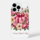 Herzförmige Einrichtung mit rosa Geschenkboxen mit weißen Polka-Punkten, mit Bogen geschmückt und von verschiedenen Blume umgeben, darunter Pfannkuchen und Rose in Rosa- und Cremetönen. Der Hintergrund ist hell, und der Text "Happy Valentine's Day" ist in einem dekorativen Schriftart unten geschrieben.