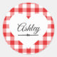 Valentine Heart Red Gingham Pattern Name Monogram Runder Aufkleber