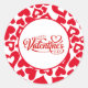 Herzsticker werden in einem rot-weißen Herz-Druck gezeigt. Passen Sie dieses Objekt an oder kaufen Sie, wie es ist. Lizenziertes Bild
