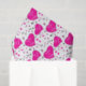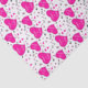 Pink hearts tissue paper. Pink hearts contain "hugs and kisses" and "be mine" text. Hand-drawn tiny arrows and hearts continue the pattern over white paper that comes in a variety of sizes.
