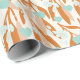 Valentins Tagesverpackungspapier mit niedlichem Bleistiftmuster. Zweige, Blume und Herz-Illustration. Pastellfarben orange und blau.