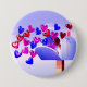 Knopf mit meinem Kunstwerk aus rosa, rot und blau Herzen fliegen aus einem ländlichen Briefkasten.
