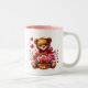 This ceramic coffee mug is shown with a cute Valentine teddy bear hearts print.