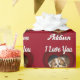 Valentine Herzstück shih tzu Liebe Custom Foto Name Geschenk Wrapping Papier. Shihtzu mit Text Ich Liebe Sie auf dunkelrot. Personalisieren Sie mit Ihrem Namen und Foto. Valentiner Hundefreunde geben eine Idee. Schöner, bezaubernder, kuscheliger Hund liegt auf dem Boden. Braun-weiße Welpe mit langem Haar, großen, runden verträumten Augen und schwarzer Nase.