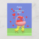 Zwei niedliche kleine Hühner laufen mit einem Herzkorb und verbreiten überall Liebe! In dem individuell anpassbaren Text steht: "Glücklicher Valentinstag!"