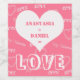 Rosa und weiß Mein Valentiner Typografie-Muster mit Doodle-Herzen und Liebe-Skripten machen den Hintergrund eines schönen personalisierten Weinetiketts für Verlobung, Hochzeitsdusche oder Freund Freundin neue Beziehung. Ihr Name + sein Name in einem großen weißen Herz = LIEBE