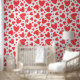 Die Tapete mit ihrem mädchenhaften Schlafzimmer ist mit niedlichen, roten Lieben auf weißem Hintergrund gestaltet. Ein niedliches Design für eine akzentuierte Wand.