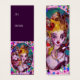 Whimsikisches vibrierendes und künstlerisches Gemälde mit bunten Konfetti. Mythische Liebe zwischen Harlequin und Columbine, Akrylmalerei inspiriert von Venezianischen Federmasken und Commedia dell'arte - Venedig. Helle, lila rosa, gelbe grüne Farben.