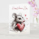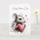 Eine skurrile Maus klopft ein großes rotes Herz, umgeben von kleineren Herzen und skizzenhaften Linien. Text kann geändert werden.