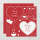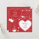 Eine flache Grußkarte, die mit zwei Namen valentinisches Muster, weiß auf rot, entworfen wurde. Passen Sie die Grußkarte unter anderem mit Ihren Herznamen, der Hintergrundfarbe an.