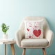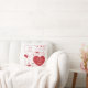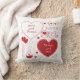 Ein Kissen mit zwei Namen valentinisches Muster, rot auf weiß. Das Kopfkissen mit Ihren Herznamen, der Hintergrundfarbe, unter anderem.