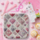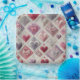 Intrikate Herzdesigns in verschiedenen Rosa-, Rot- und lila-Tönen sind in einem diagonalen Steppmuster angeordnet